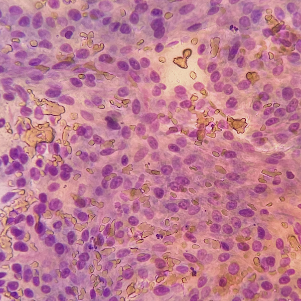 皮膚軟部組織肉腫は、線維組織や脂肪組織、筋肉などの皮膚周囲の間葉系組織から発生する悪性腫瘍の総称で、犬や猫では比較的よく見られる皮膚腫瘍の一つです。多くは局所浸潤性が強く、見た目よりも広範囲に広がるため、不完全切除では再発率が高いことが報告されています。一方で転移率は比較的低く、特に低~中グレードでは肺やリンパ節への遠隔転移は稀とされています。診断には細胞診や病理組織検査が重要であり、治療の第一選択は十分な範囲の切除手術です。症例によっては再発予防のために放射線療法や電気化学療法を併用することで、局所制御率や生存期間の改善が期待されます。