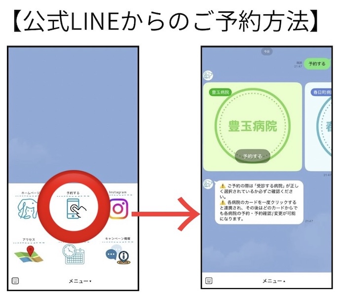 ご予約は LINE公式アカウントの「予約する」から簡単にお手続きいただけます。