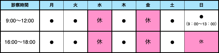 日曜・祝日は13時までの診療です。